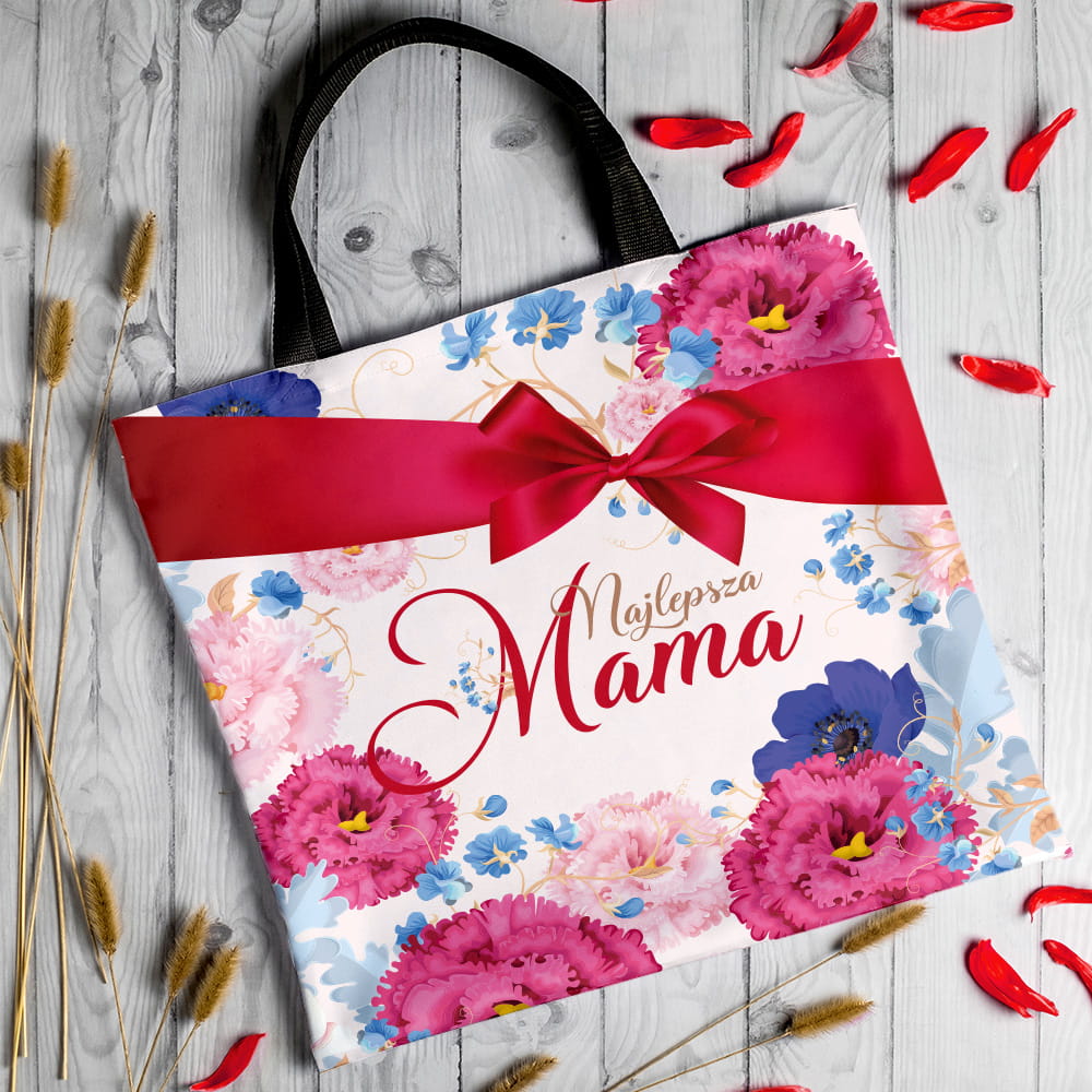 Znudziły Ci się już standardowe prezenty na Dzień Matki? Podaruj swojej mamie praktyczną torbę na zakupy z nadrukiem dla mamy w piękny kwiatowy wzór.