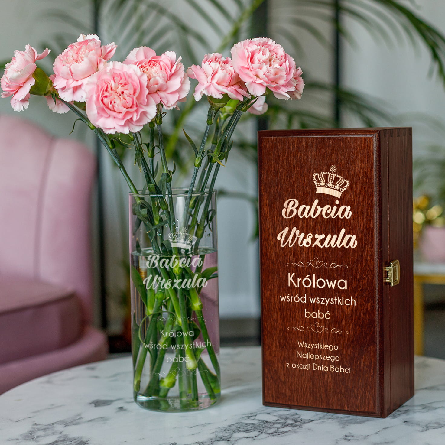 Wazon z Grawerem w Skrzynce Dla Babci - Prezent Na Dzień Babci - Królowa Babcia