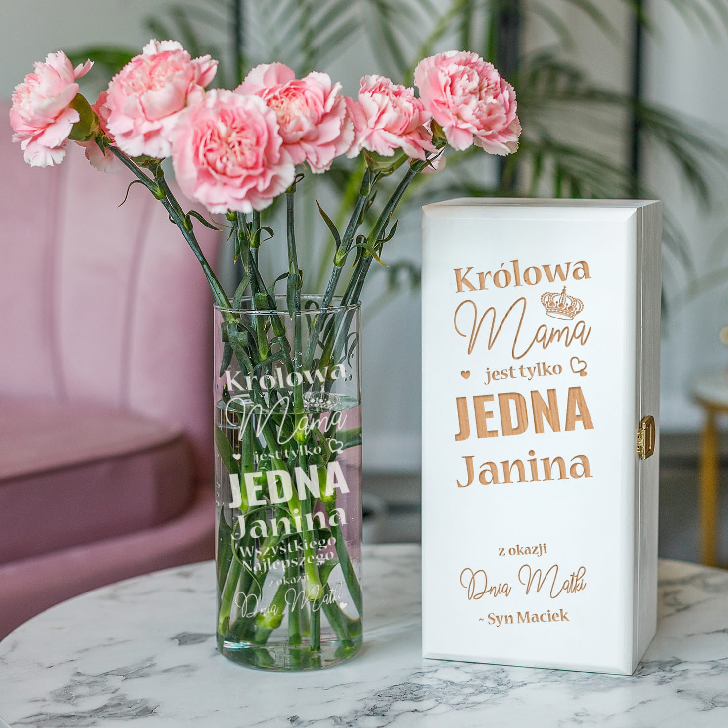 Wazon z Grawerem w Skrzynce dla Mamy - Prezent na Dzień Matki - Królowa Mama