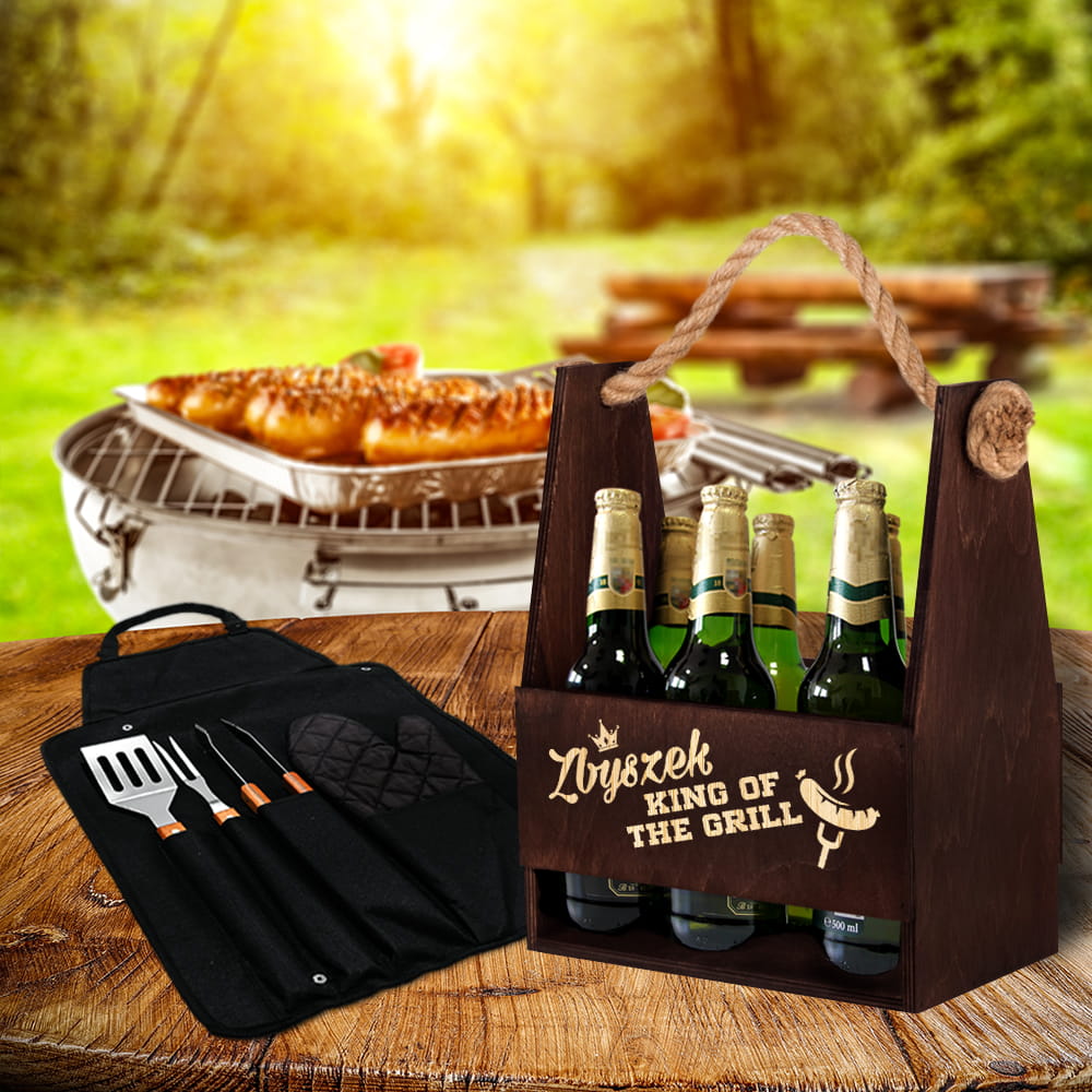 Zestaw Grillowy Nosidło i Akcesoria do Grilla - King Off The Grill z Imieniem