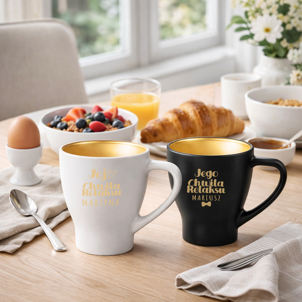 ✨ Szukasz oryginalnego i eleganckiego pomysłu na prezent, który zrobi wrażenie? Nasz zestaw dla par, zawierający kubki do kawy lub herbaty w dwóch kolorach z personalizowanym grawerem, to idealny wybór!