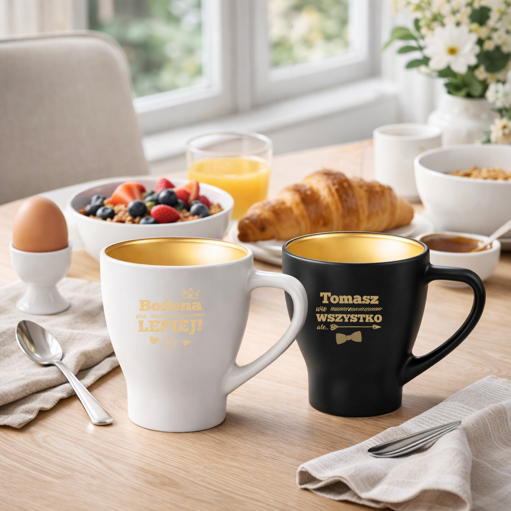 ✨ Szukasz oryginalnego i eleganckiego pomysłu na prezent, który zrobi wrażenie? Nasz zestaw dla par, zawierający kubki do kawy lub herbaty w dwóch kolorach z personalizowanym grawerem, to idealny wybór!