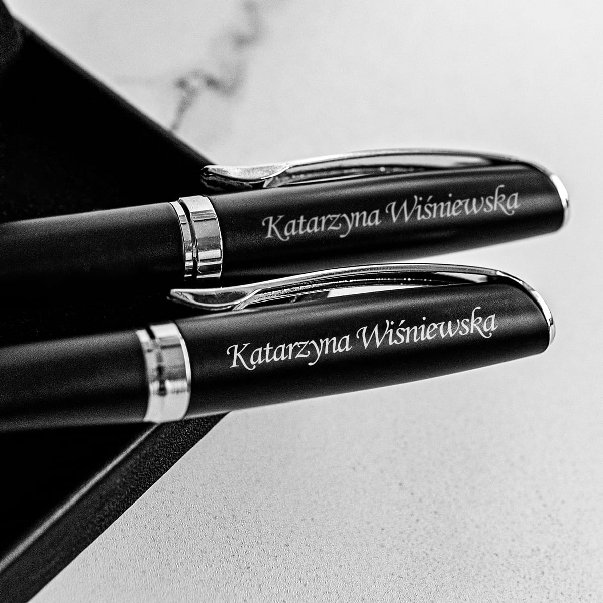 - Tekst na długopis i pióro - np. imię i nazwisko w formie podstawowej.
