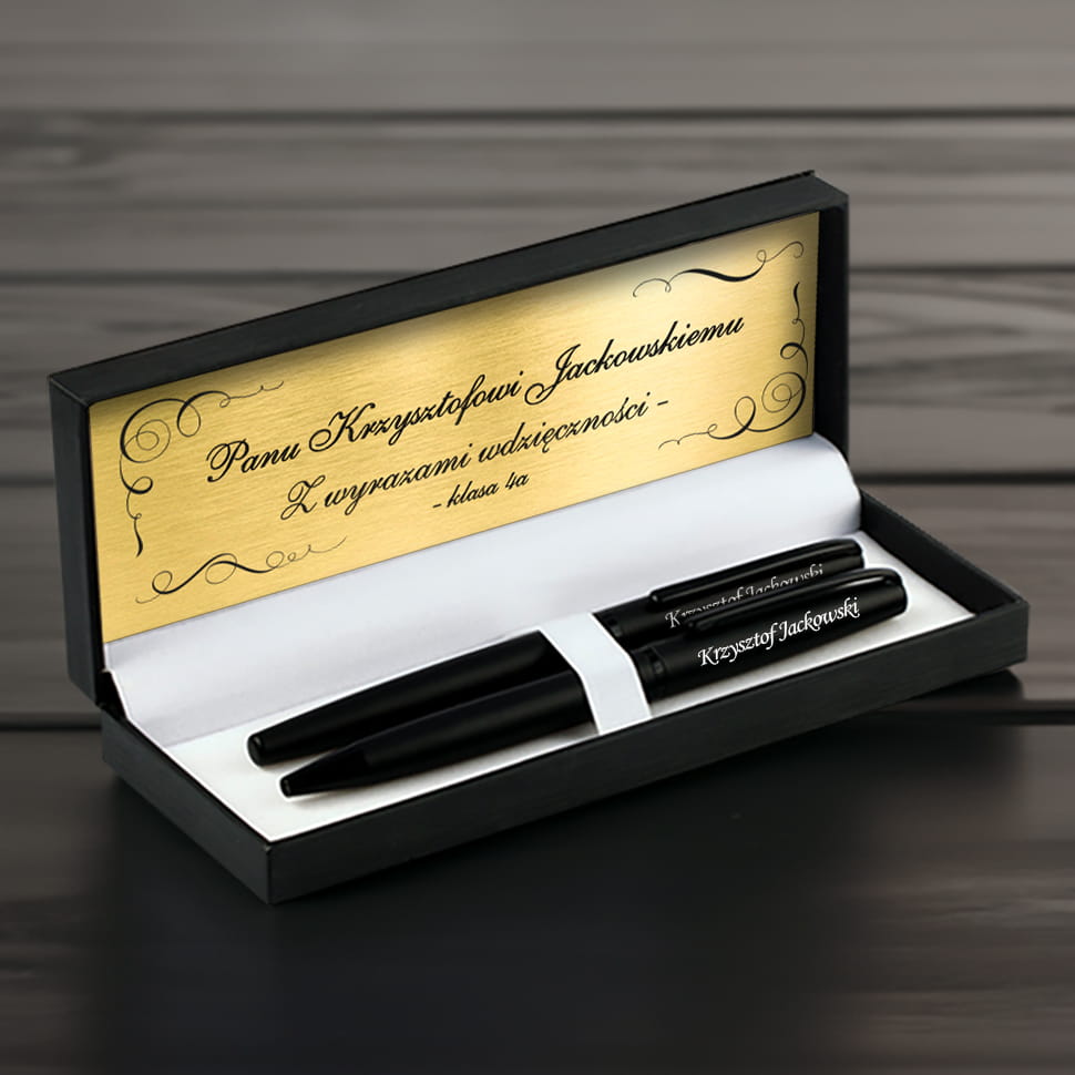 Spraw swojemu nauczycielowi lub nauczycielce gustowny prezent, wręczając personalizowany upominek w formie grawerowanego zestawu piśmienniczego z dedykacją.