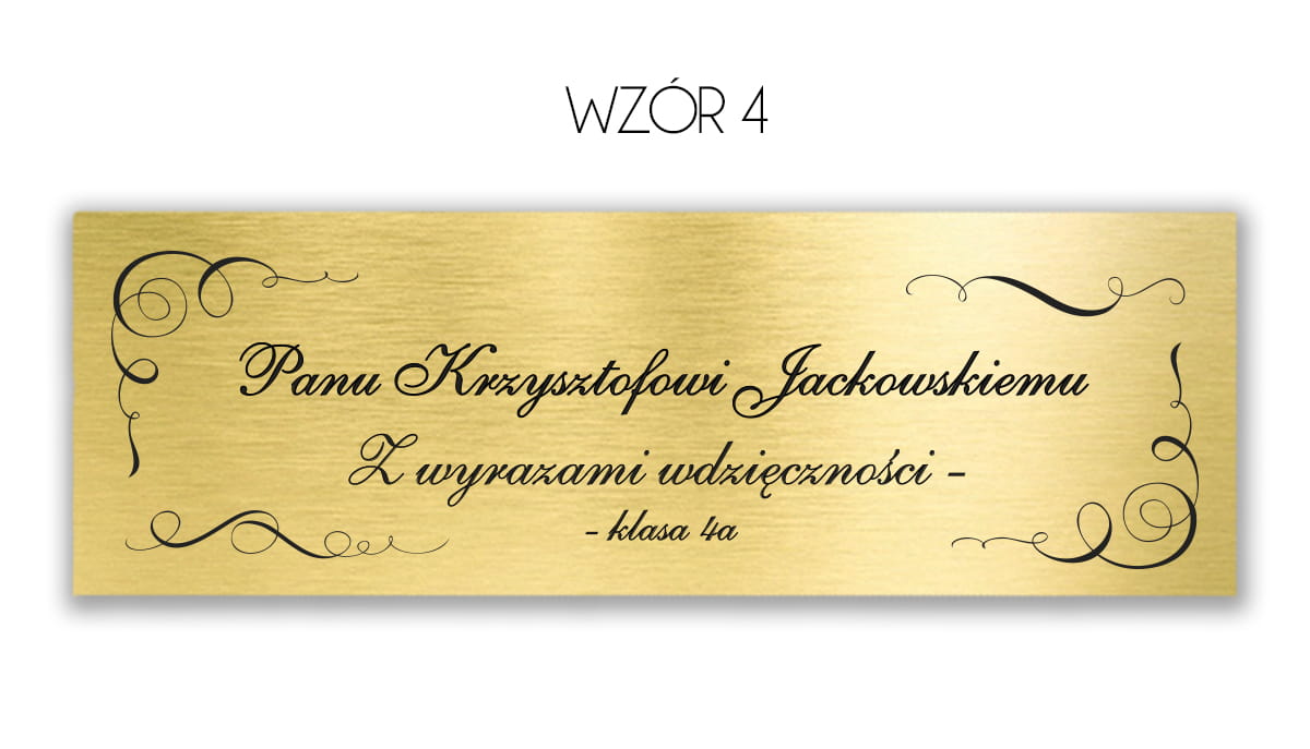 - Dedykacja (może to być nasz proponowany tekst lub twoja osobista propozycja. Pamiętaj aby tekst nie był za długi - maks. 1-2 krótkie zdania, aby tabliczka wyglądała estetycznie i była czytelna, jeśli mamy umieścić nasz tekst, napisz "dedykacja jak we wzorze").