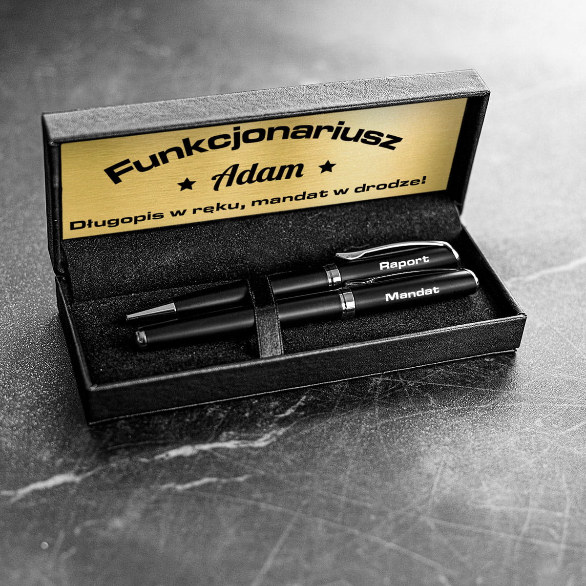 ELEGANCKI ZESTAW PIŚMIENNICZY DLA POLICJANTA Z GRAWEREM - RAPORT, MANDAT