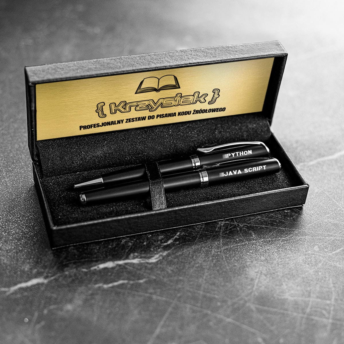 ELEGANCKI ZESTAW PIŚMIENNICZY DLA PROGRAMISTY Z GRAWEREM - PYTHON, JAVA SCRIPT