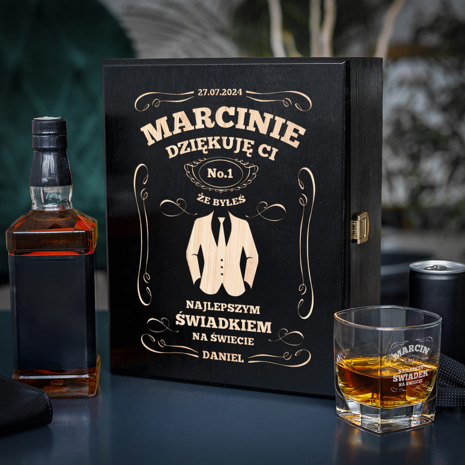 ✳️ Chciałbyś podziękować świadkowi za jego pomoc i obecność podczas uroczystości weselnej? Wręcz mu butelkę znanego trunku w skrzynce z personalizowanym grawerem w zestawie z grawerowana szklanką jako podziękowanie za świadkowanie. ✳️