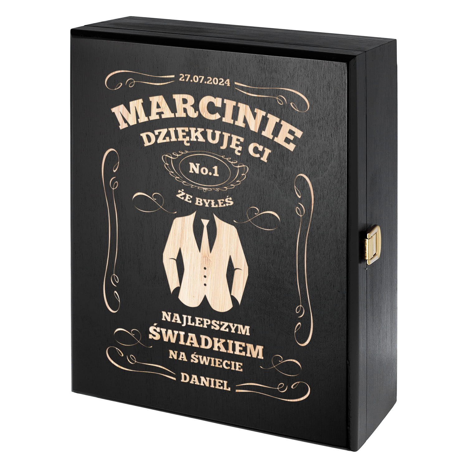 ⭐ ORYGINALNA SKRZYNKA NA ALKOHOL Z GRAWEREM - PODZIĘKOWANIE DLA ŚWIADKA ⭐
