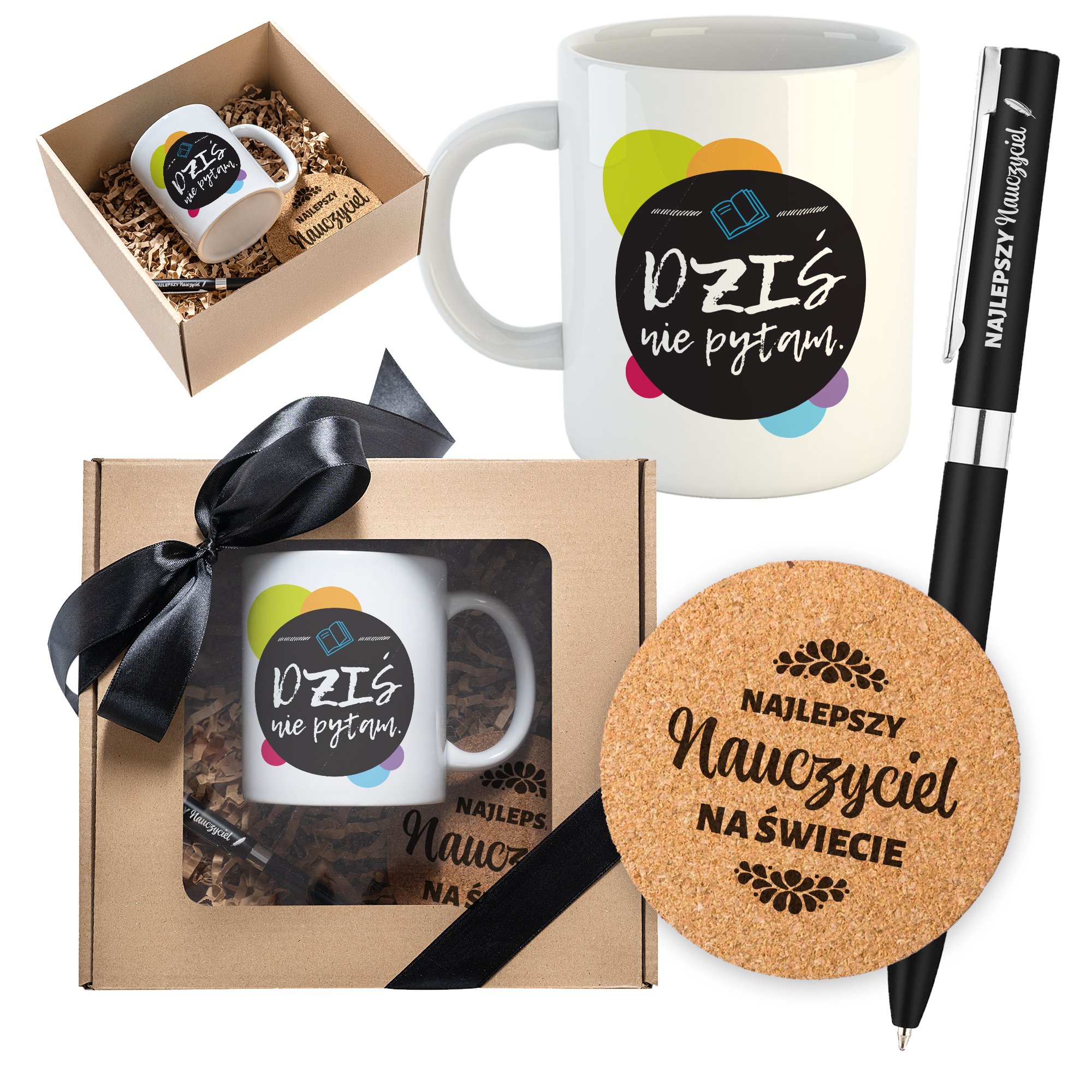 KUBEK Z NADRUKIEM I DŁUGOPIS Z GRAWEREM - Wyjątkowy zestaw prezentowy na Dzień Nauczyciela!