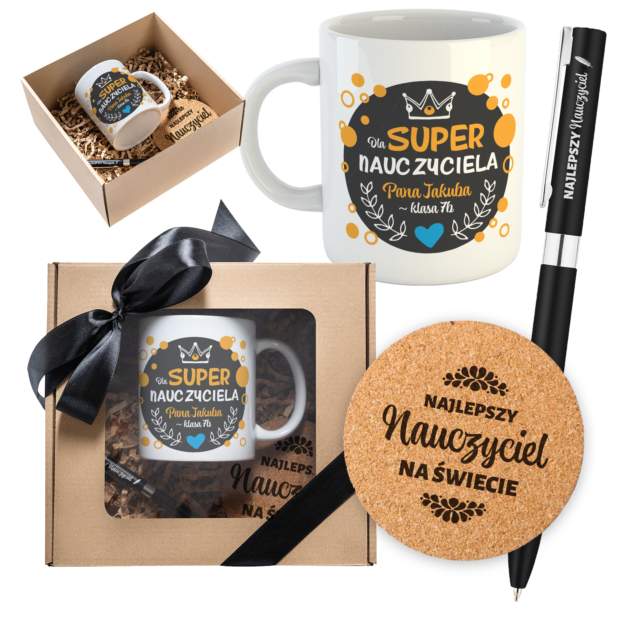 KUBEK Z NADRUKIEM I DŁUGOPIS Z GRAWEREM - Wyjątkowy zestaw prezentowy na Dzień Nauczyciela!