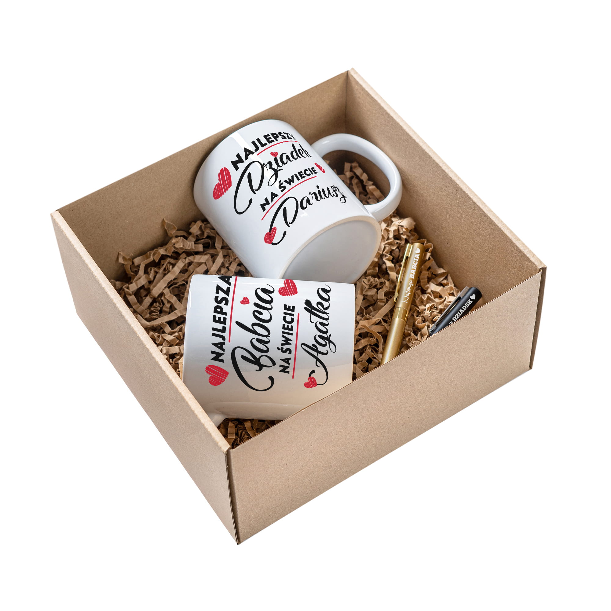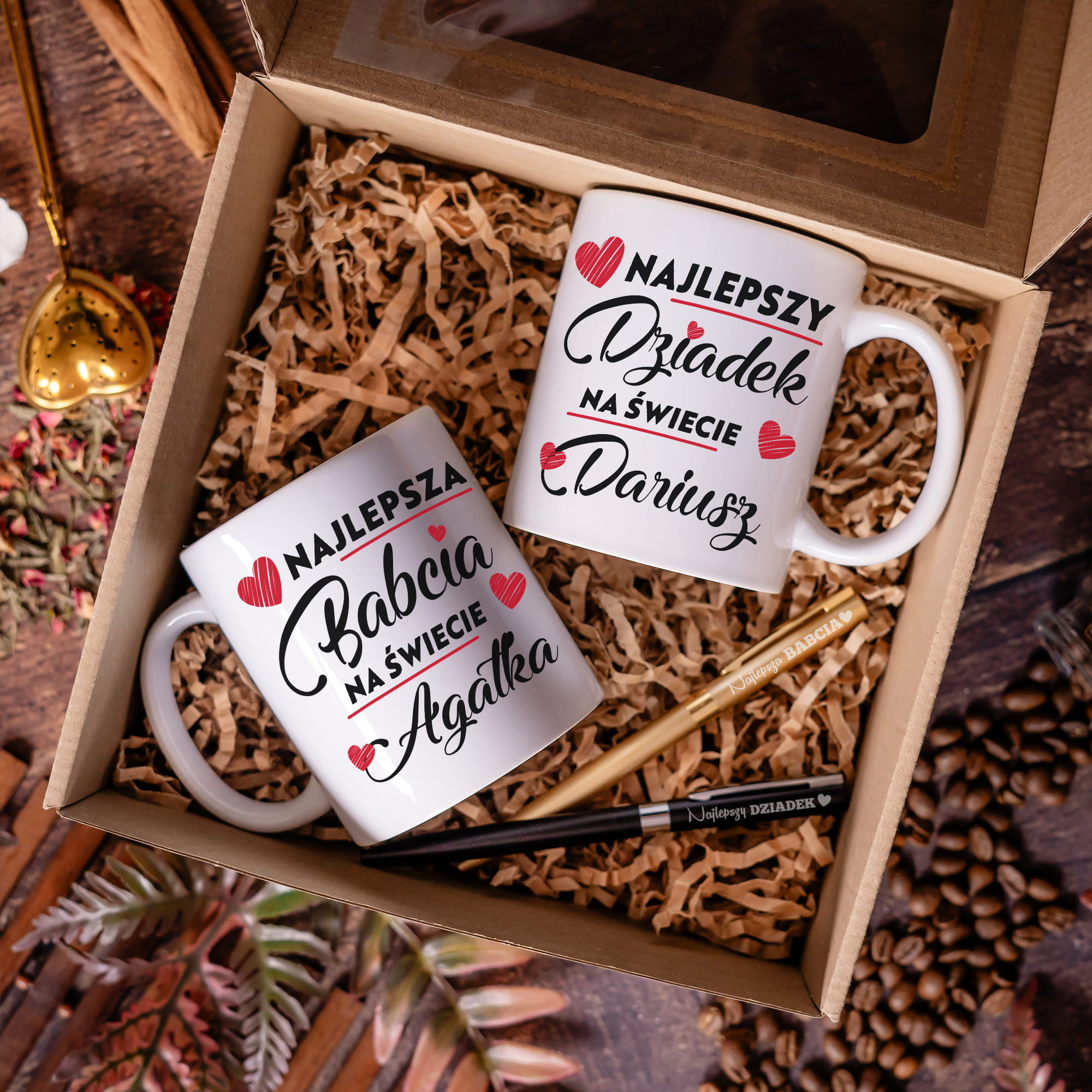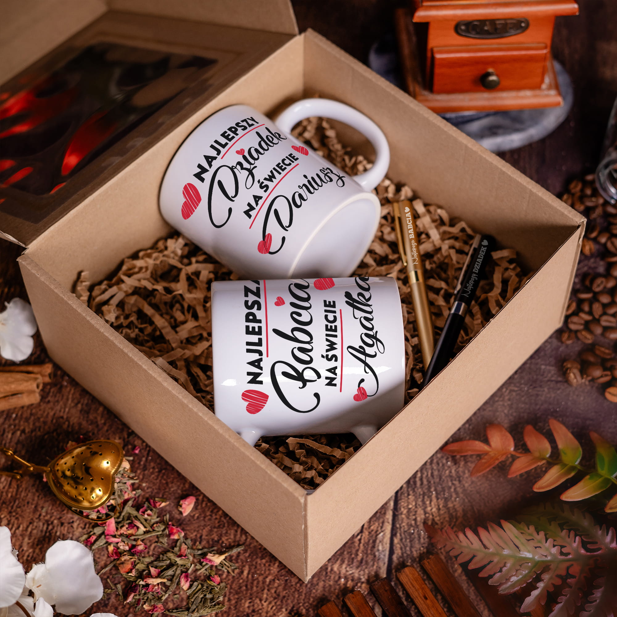 ZESTAW PREZENTOWY DLA DZIADKÓW - KUBKI PERSONALIZOWANE + DŁUGOPISY Z GRAWEREM
