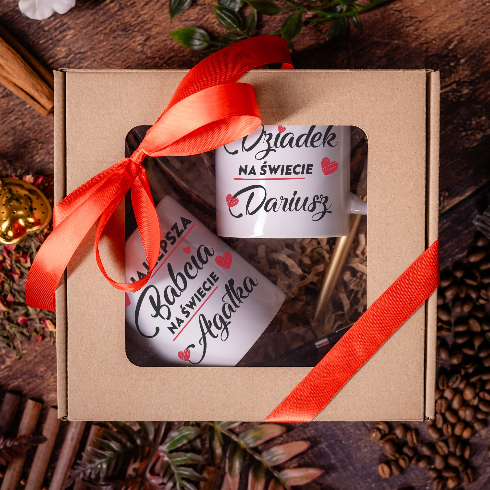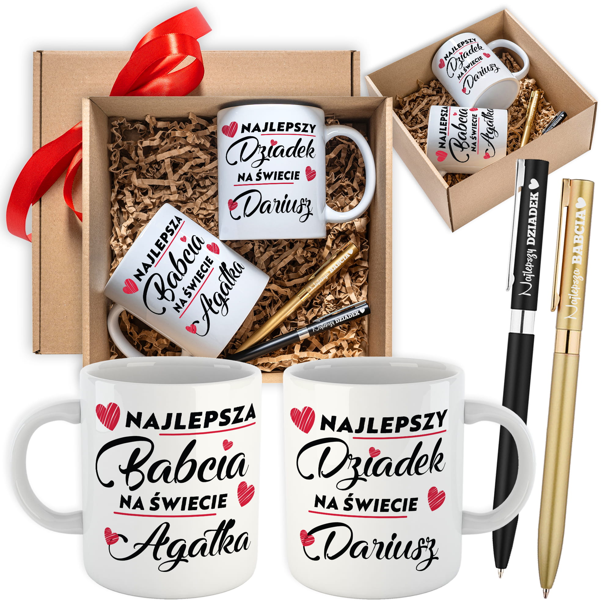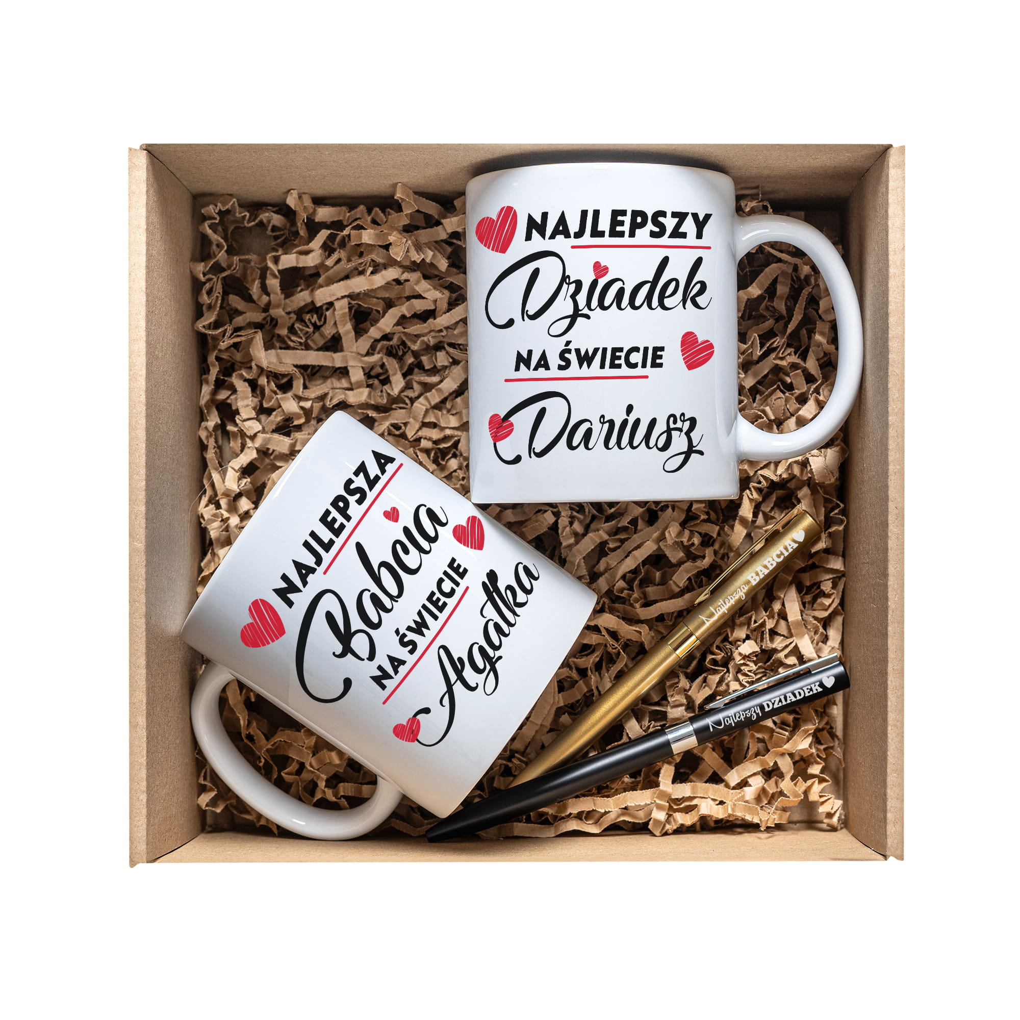 ZESTAW PREZENTOWY DLA DZIADKÓW - KUBKI PERSONALIZOWANE + DŁUGOPISY Z GRAWEREM