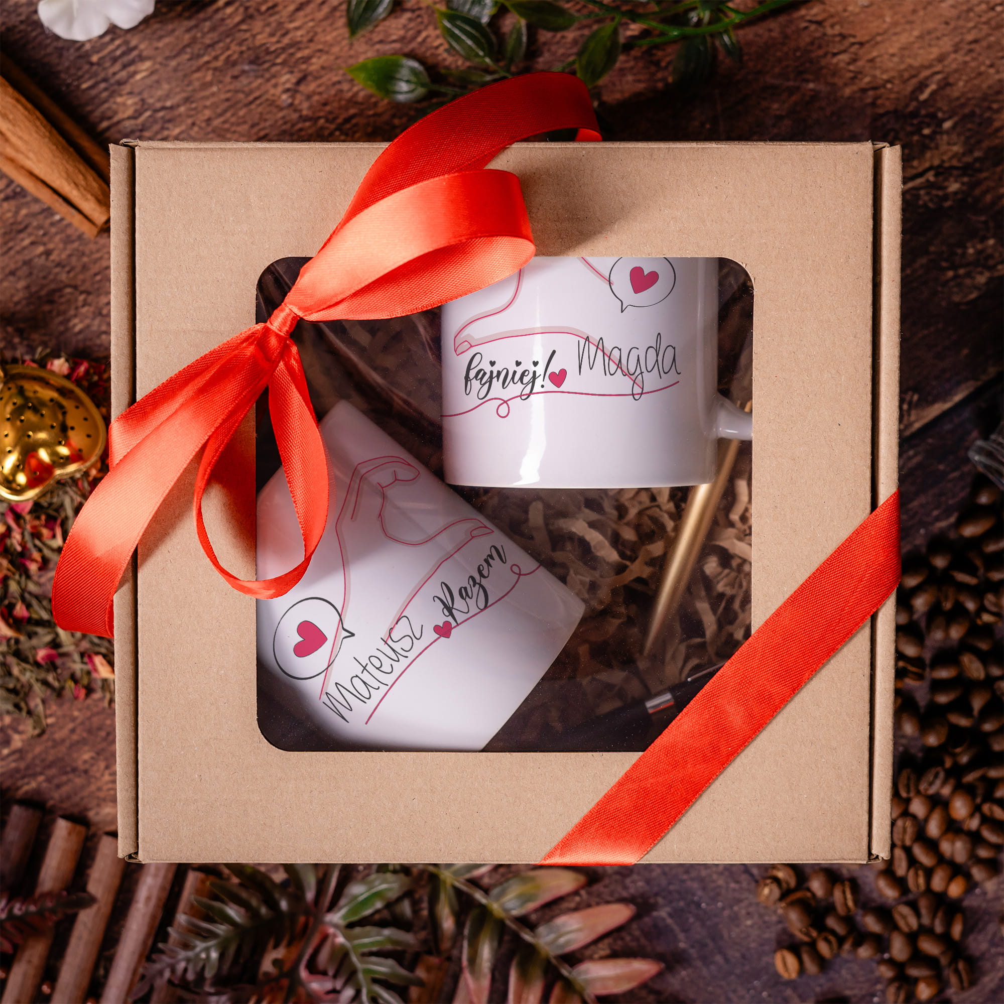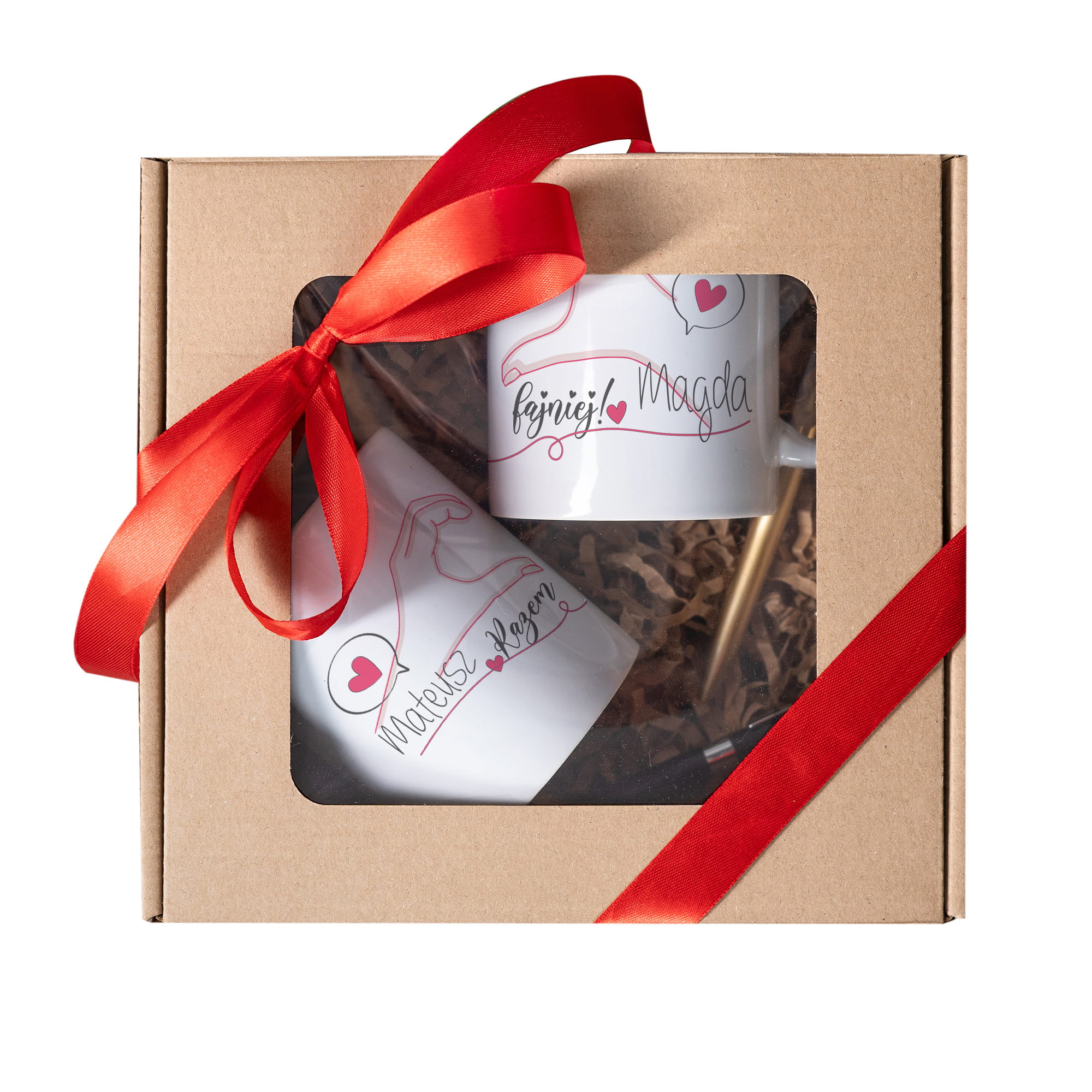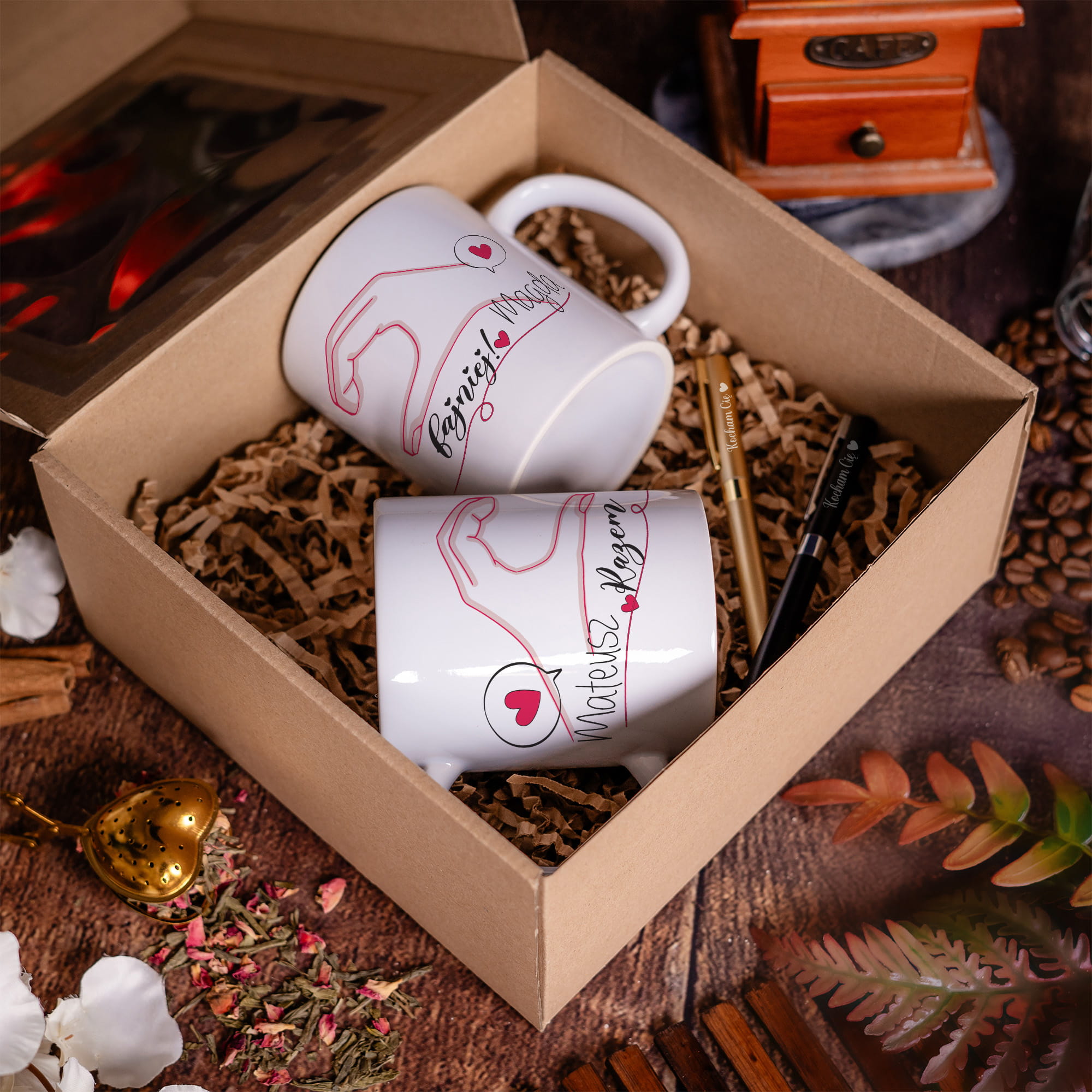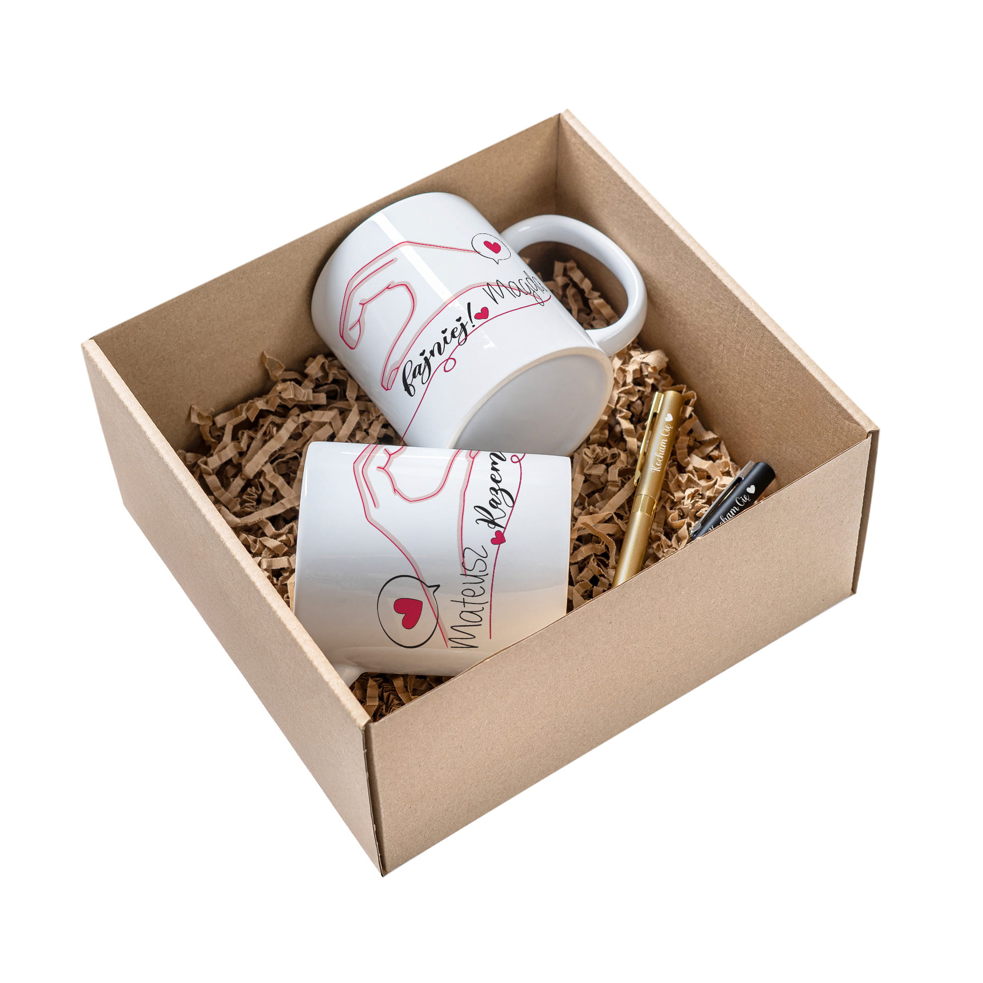 Zestaw prezentowy na Walentynki - Komplet Kubków z Imionami + Długopisy z Grawerem - Razem Fajniej Dłonie