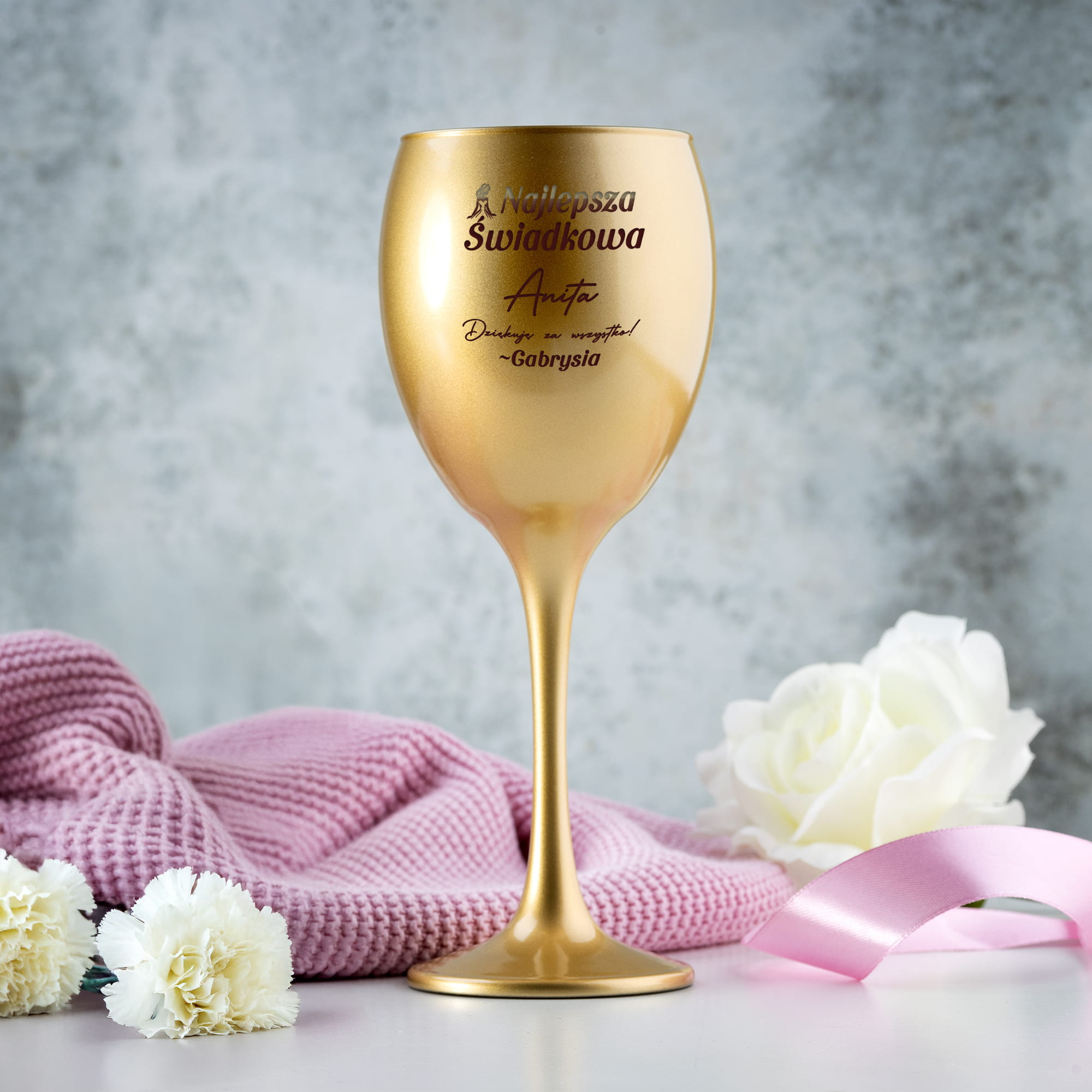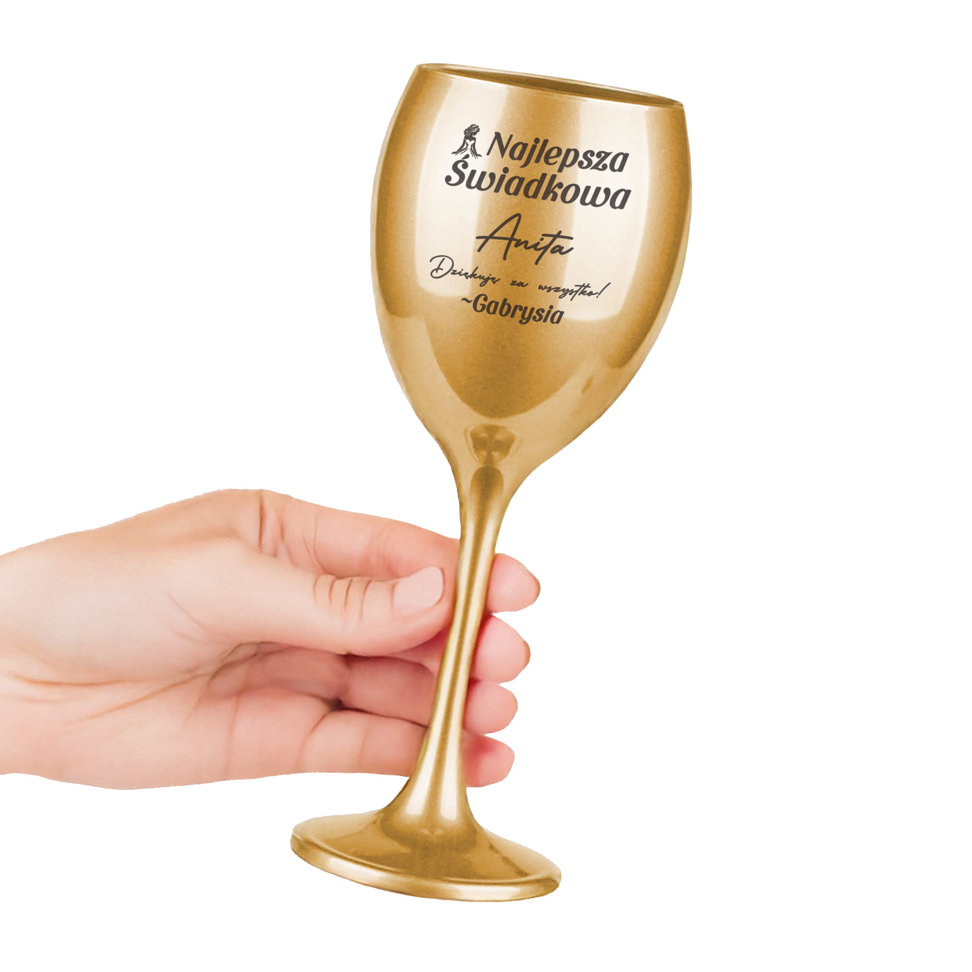 ✨ Szukasz prezentu dla Świadkowej? Grawerowany złoty kieliszek na wino w pudełku prezentowym to wybór idealny. Dzięki temu upominkowi obdarowana będzie mogła pozwolić sobie na chwilę relaksu w domowym zaciszu z ulubionym trunkiem w dłoni. Personalizacja na kieliszku sprawi, że Twój prezent będzie wyjątkowy i jedyny w swoim rodzaju i przyniesie wiele radości.