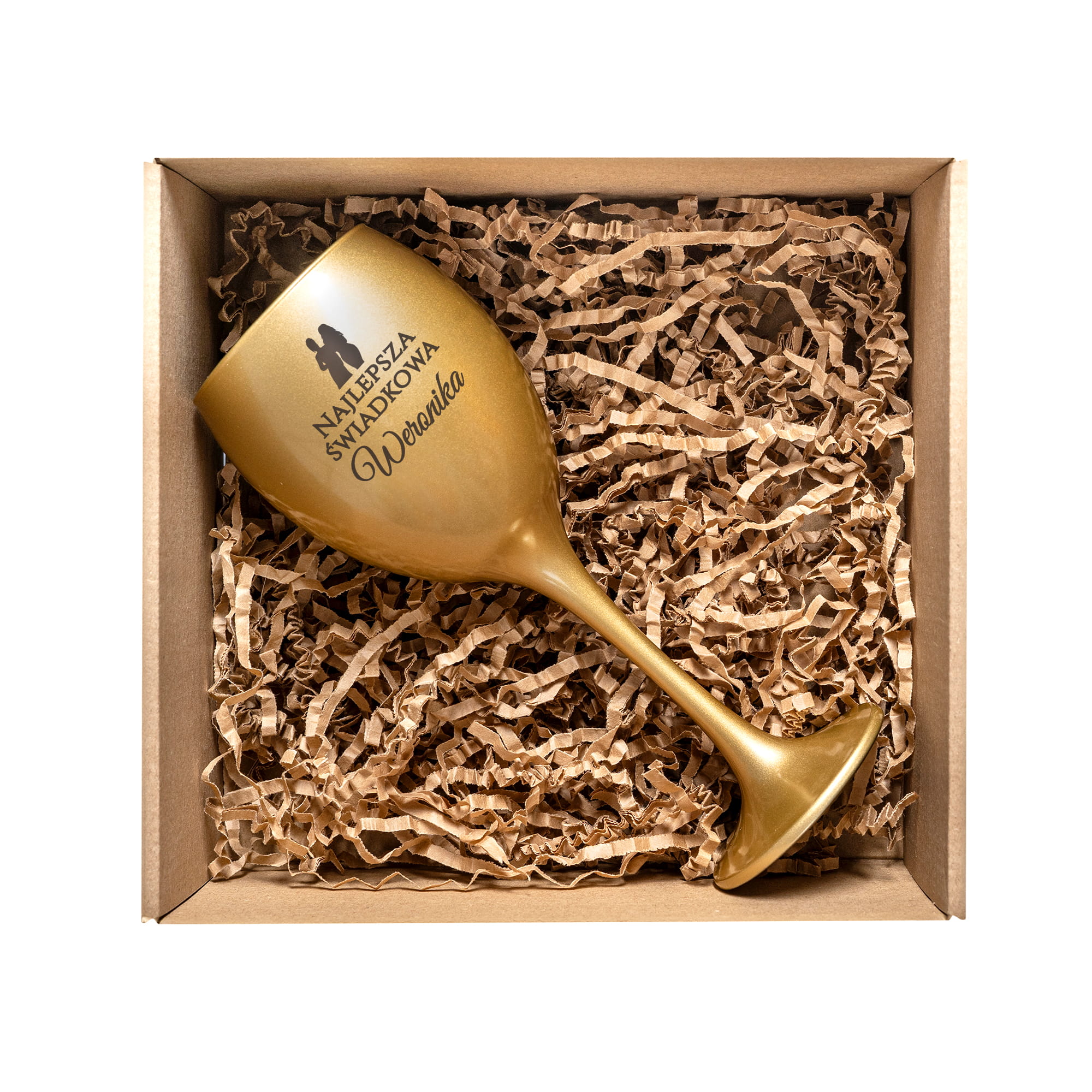 Złoty Kieliszek do Wina z Grawerem - Podziękowanie dla Świadkowej - Zestaw Prezentowy Box dla Świadkowej - Najlepsza Świadkowa Postacie