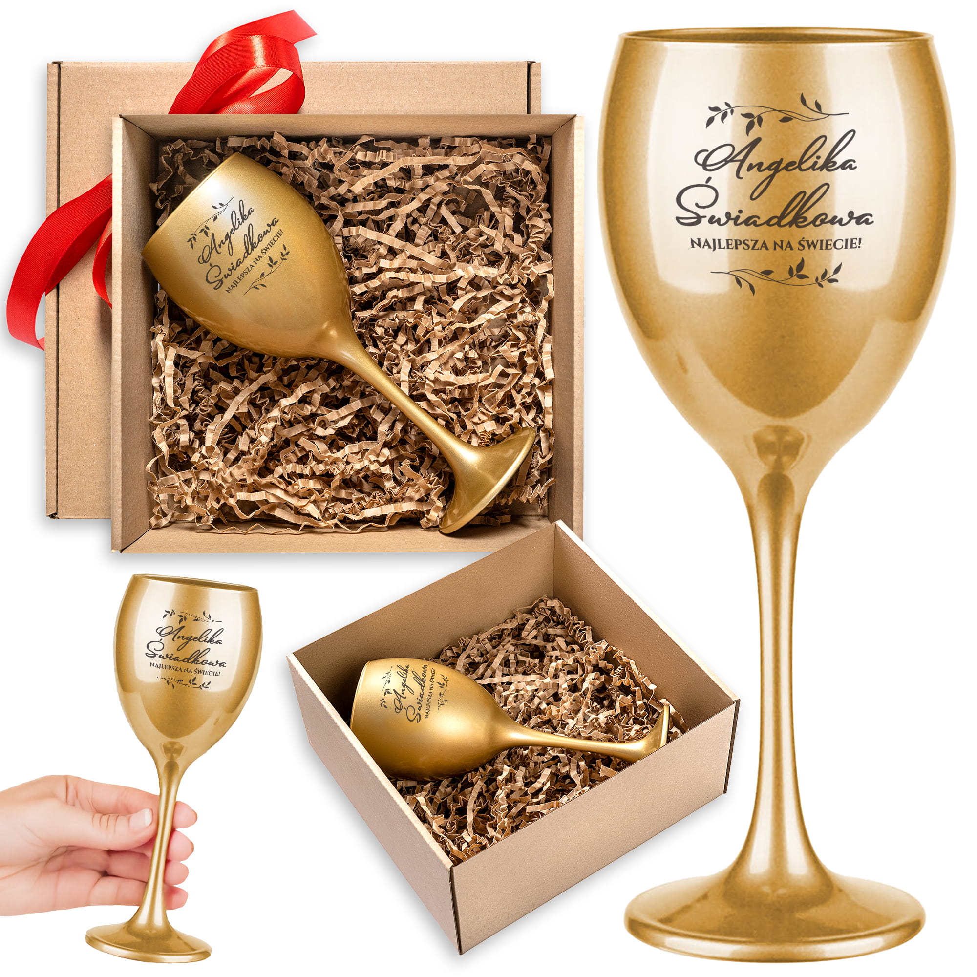 Złoty Kieliszek do Wina z Grawerem - Podziękowanie dla Świadkowej - Zestaw Prezentowy Box dla Świadkowej - Świadkowa Najlepsza na Świecie