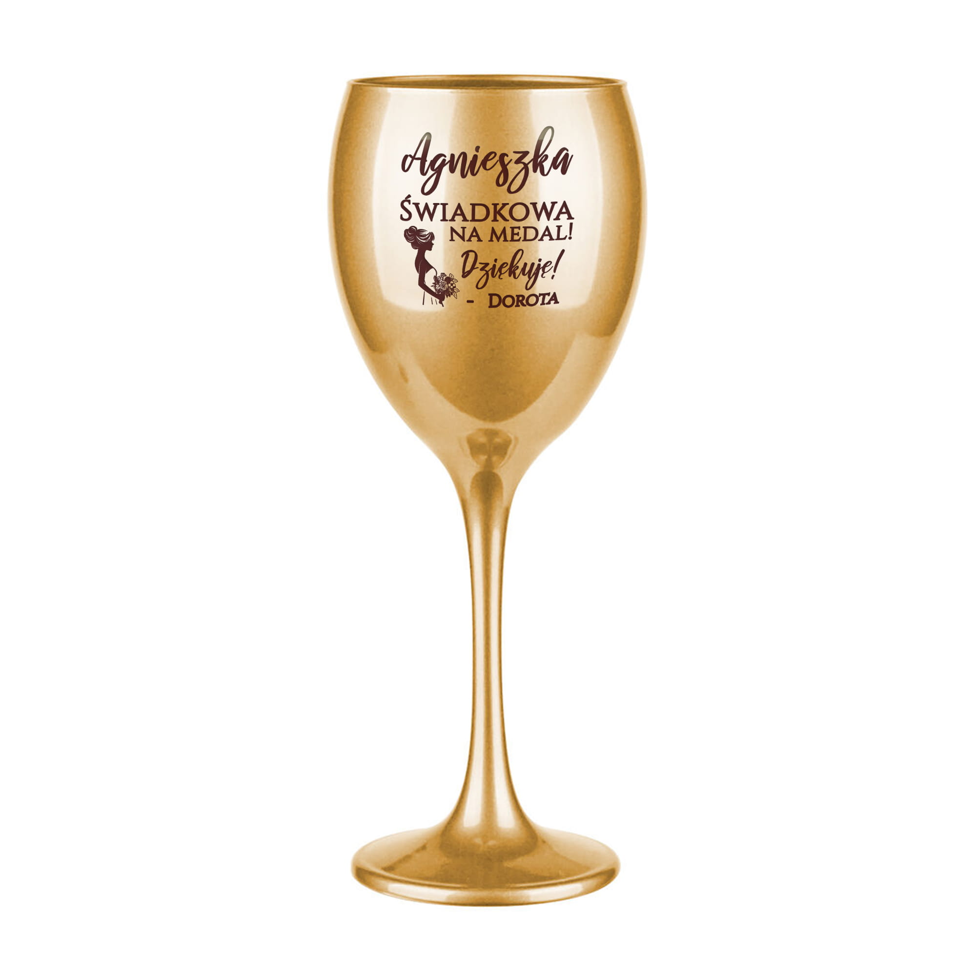 Złoty Kieliszek do Wina z Grawerem - Podziękowanie dla Świadkowej - Zestaw Prezentowy Box dla Świadkowej - Świadkowa na Medal