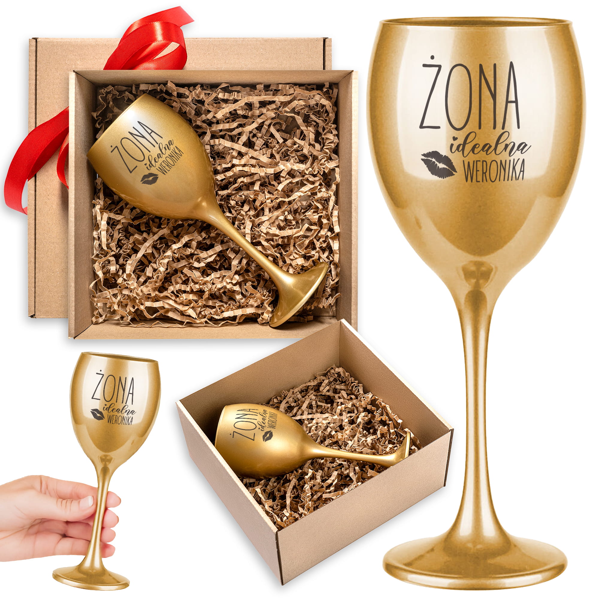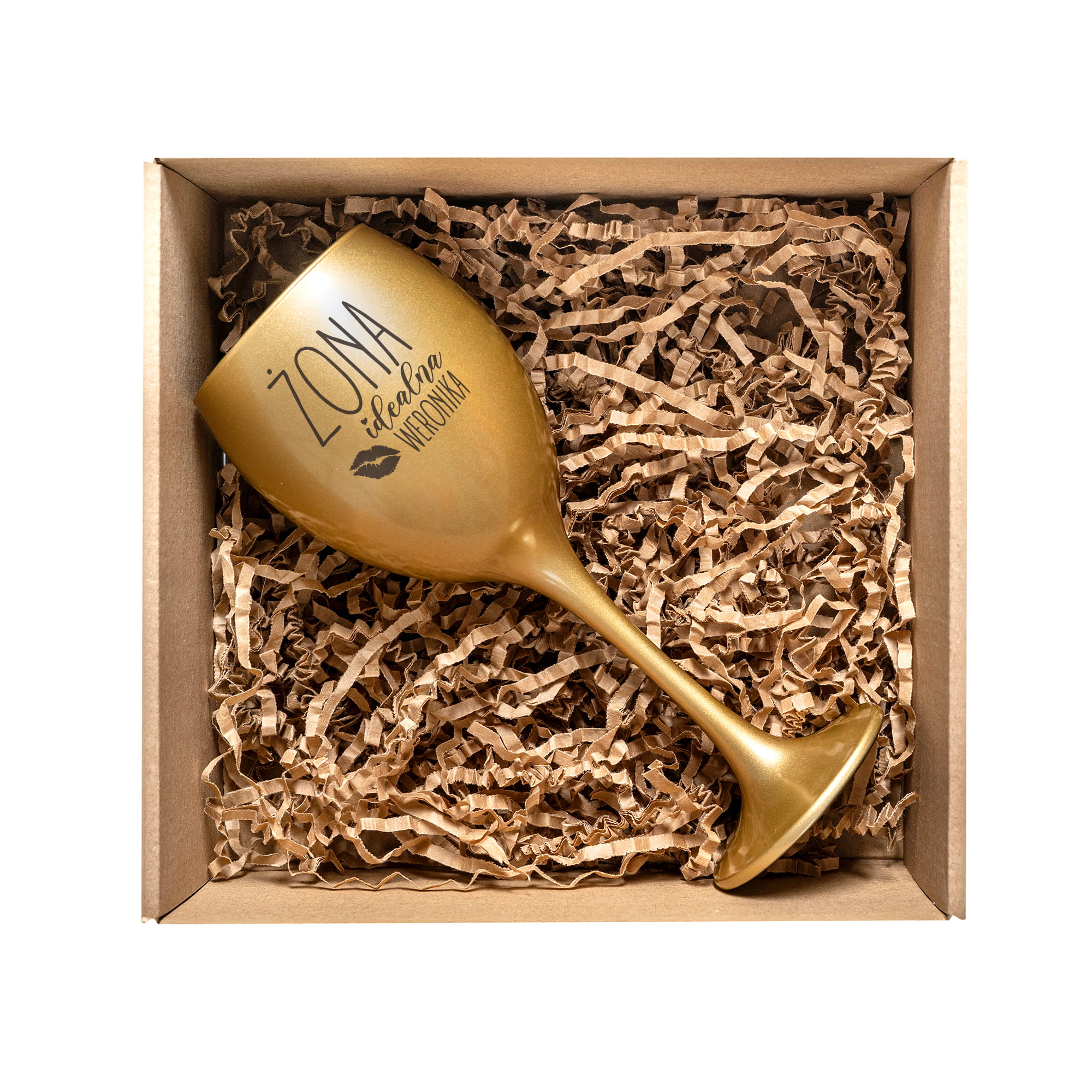 ZŁOTY KIELISZEK DO WINA Z GRAWEREM - ZESTAW PREZENTOWY DLA NIEJ - KIELISZEK Z IMIENIEM