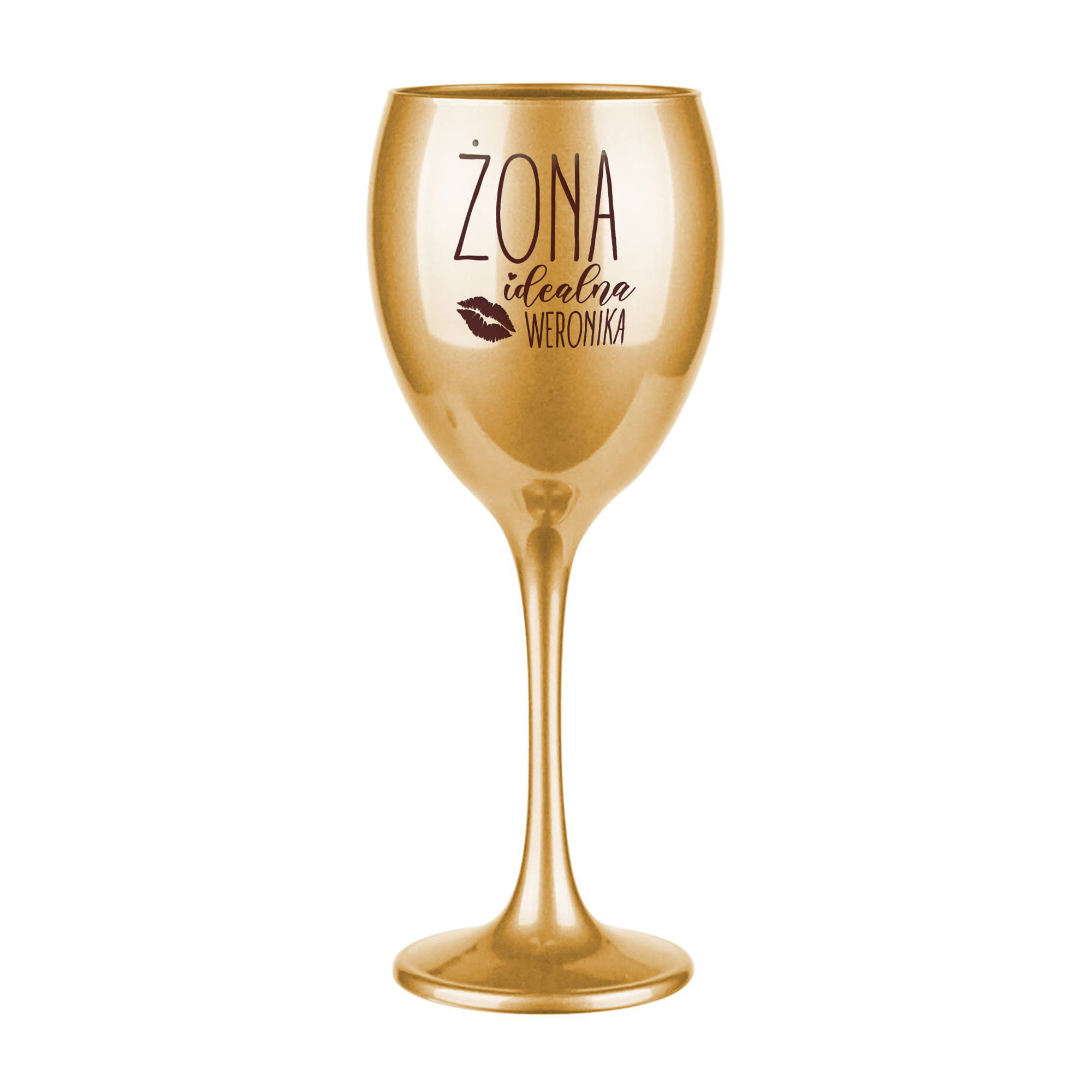 Złoty Kieliszek do Wina z Grawerem - Prezent Na Dzień Kobiet dla Żony - Żona Idealna Usta