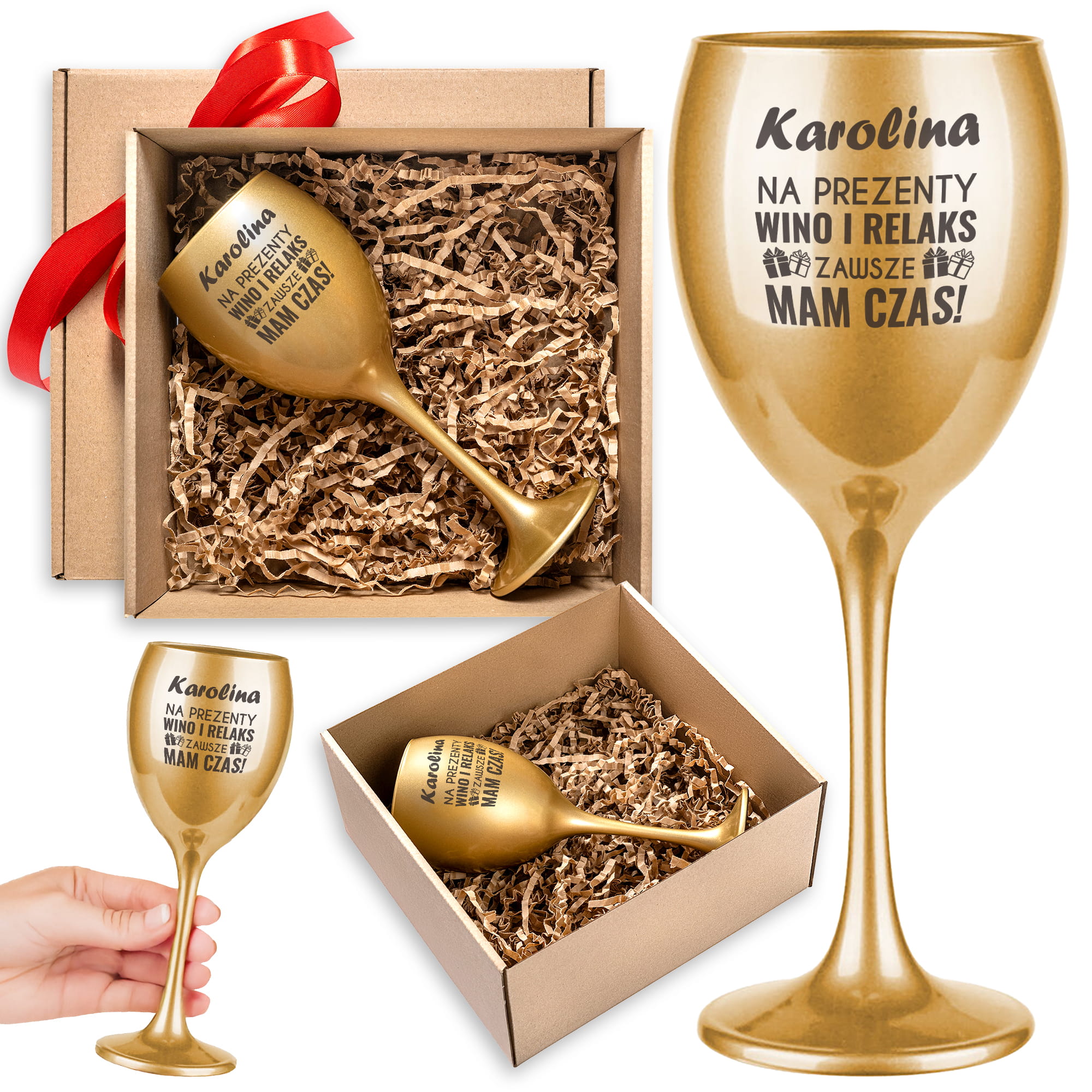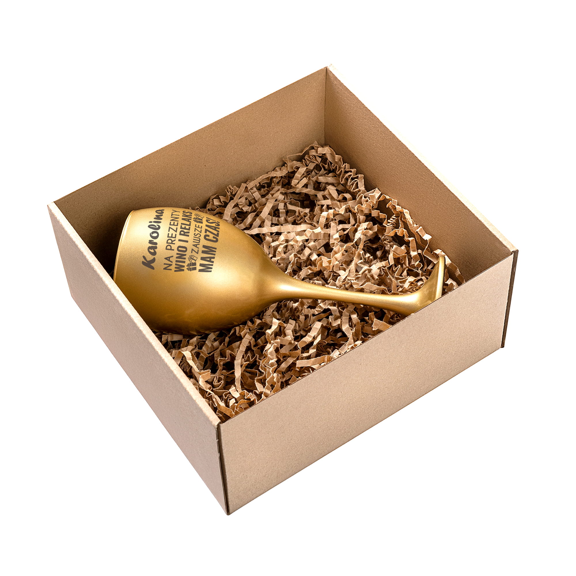 Złoty Kieliszek do Wina z Grawerem - Prezent na Święta - Świąteczny Zestaw Prezentowy - Prezenty Wino i Relaks