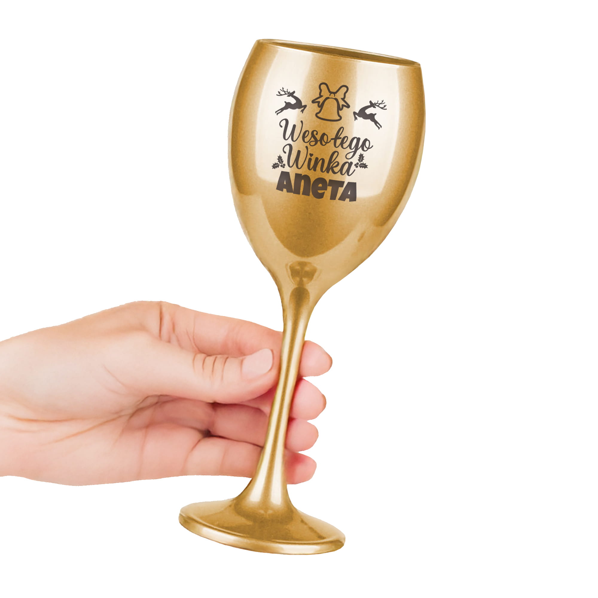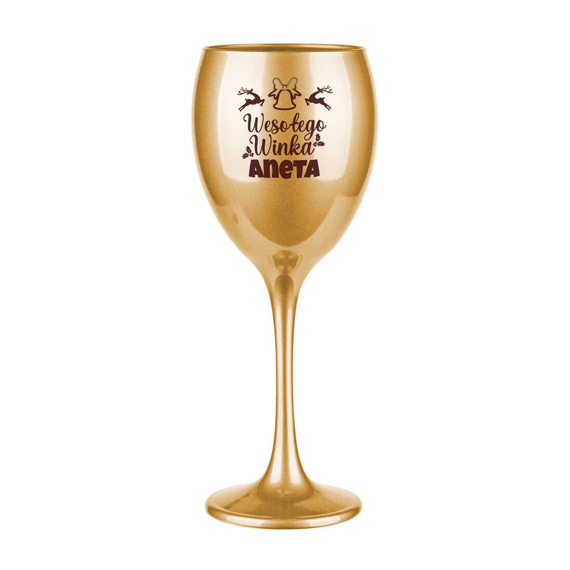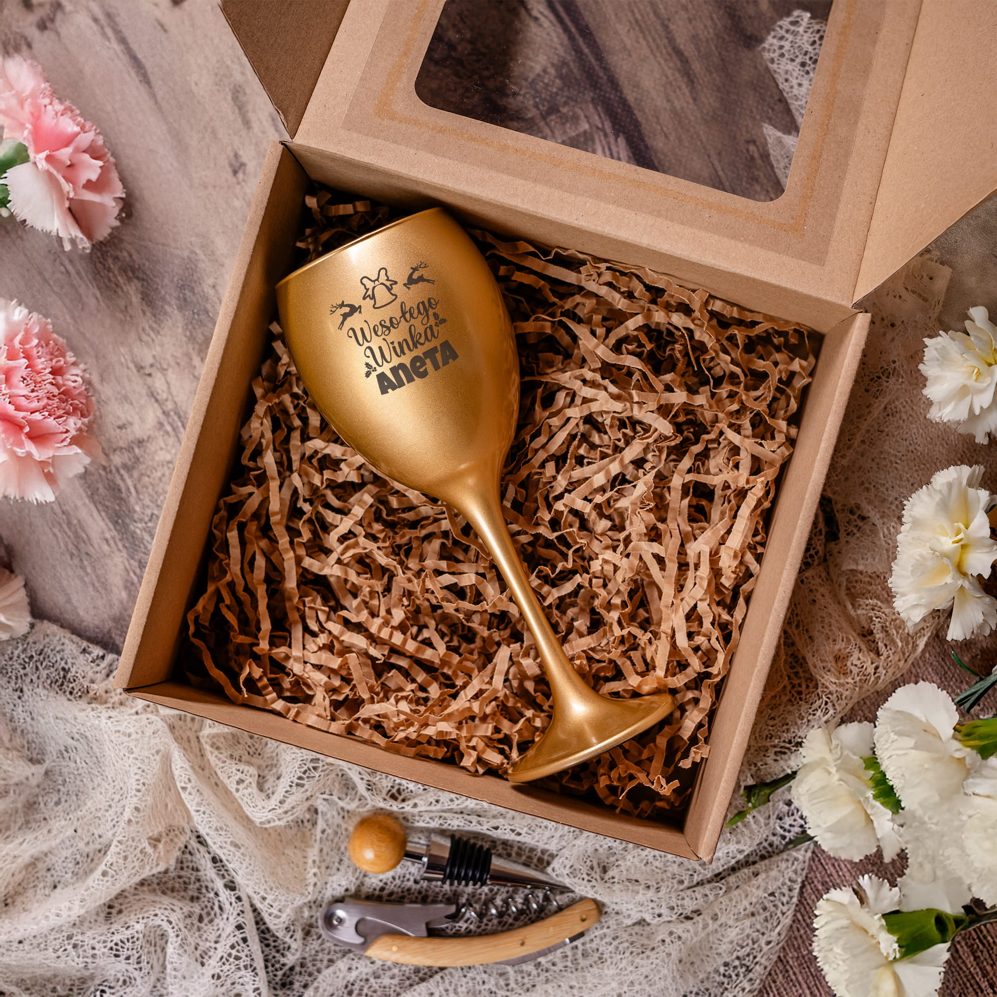 Złoty Kieliszek do Wina z Grawerem - Prezent na Święta - Świąteczny Zestaw Prezentowy - Wesołego Winka