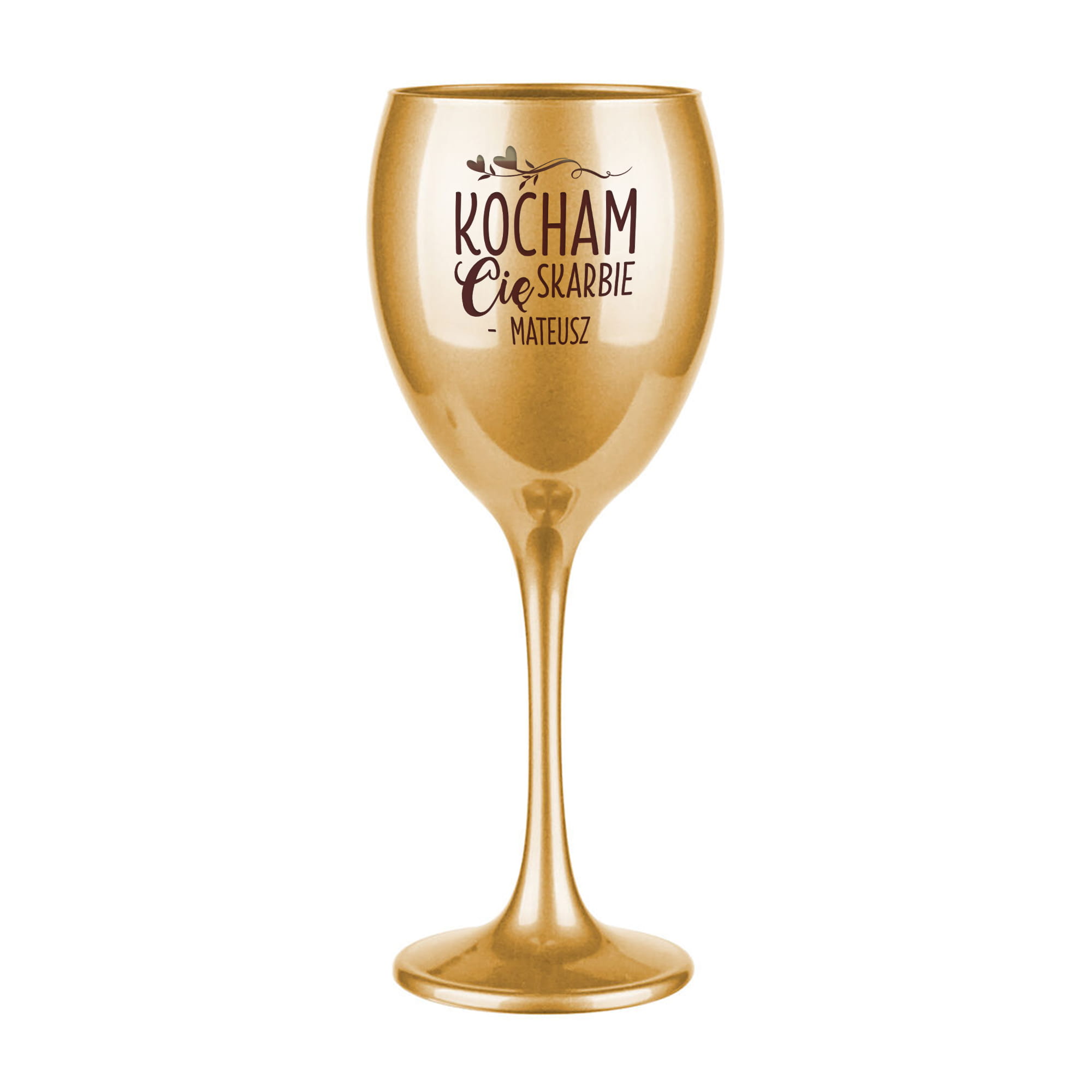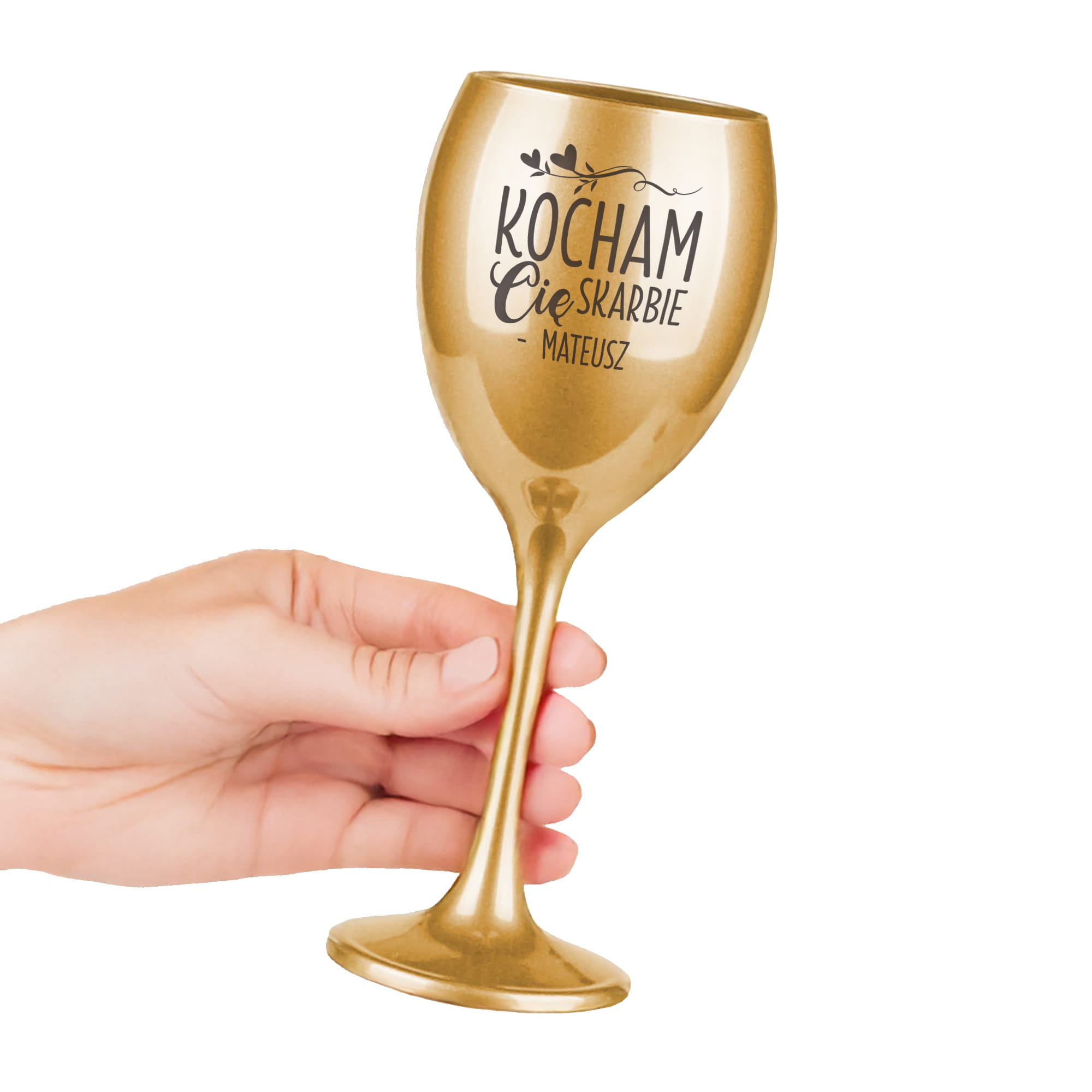 Złoty Kieliszek do Wina z Grawerem - Prezent na Walentynki dla Niej - Kocham Cię Skarbie