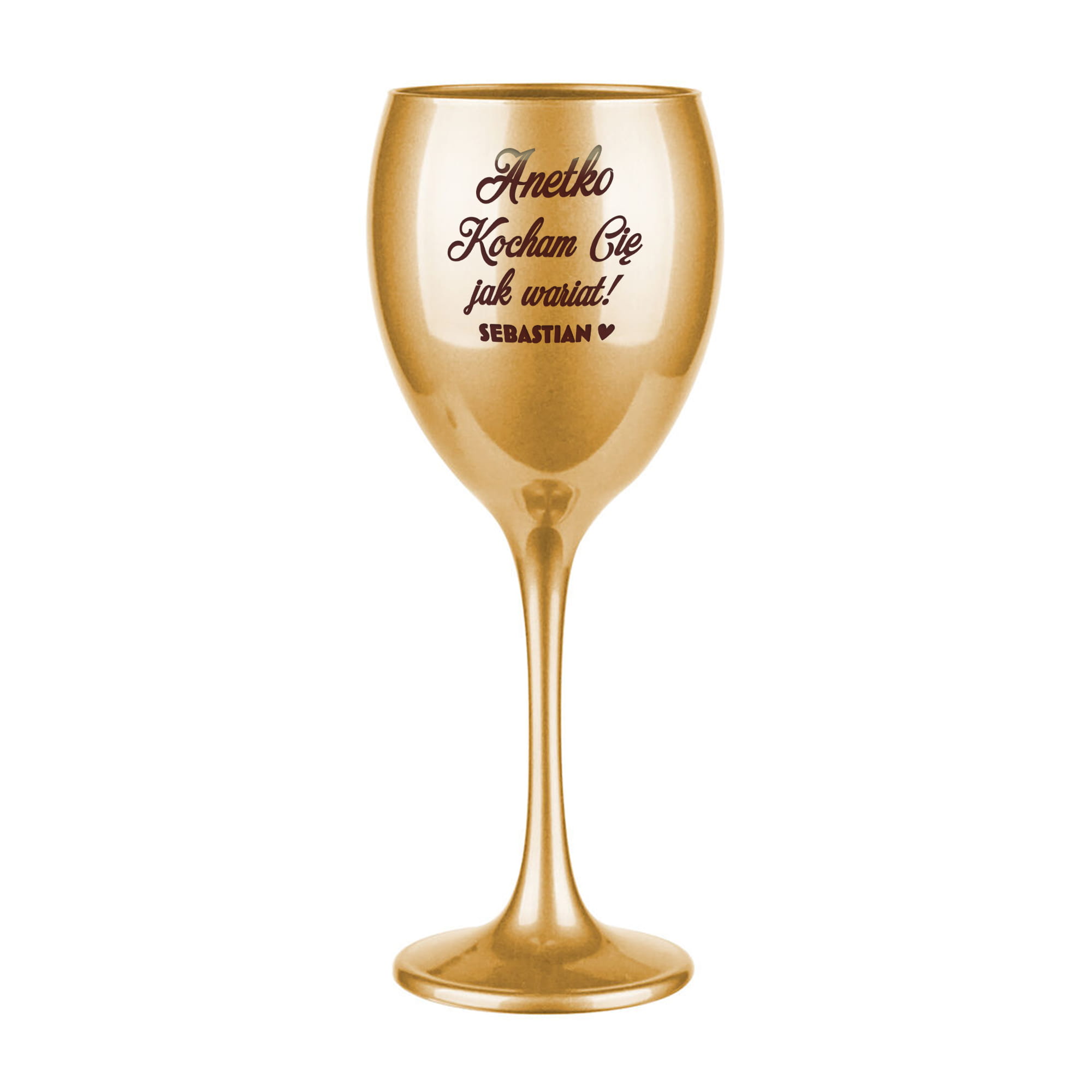 Złoty Kieliszek do Wina z Grawerem - Prezent na Walentynki dla Niej - Zestaw Prezentowy na Walentynki - Kocham Cię Jak Wariat