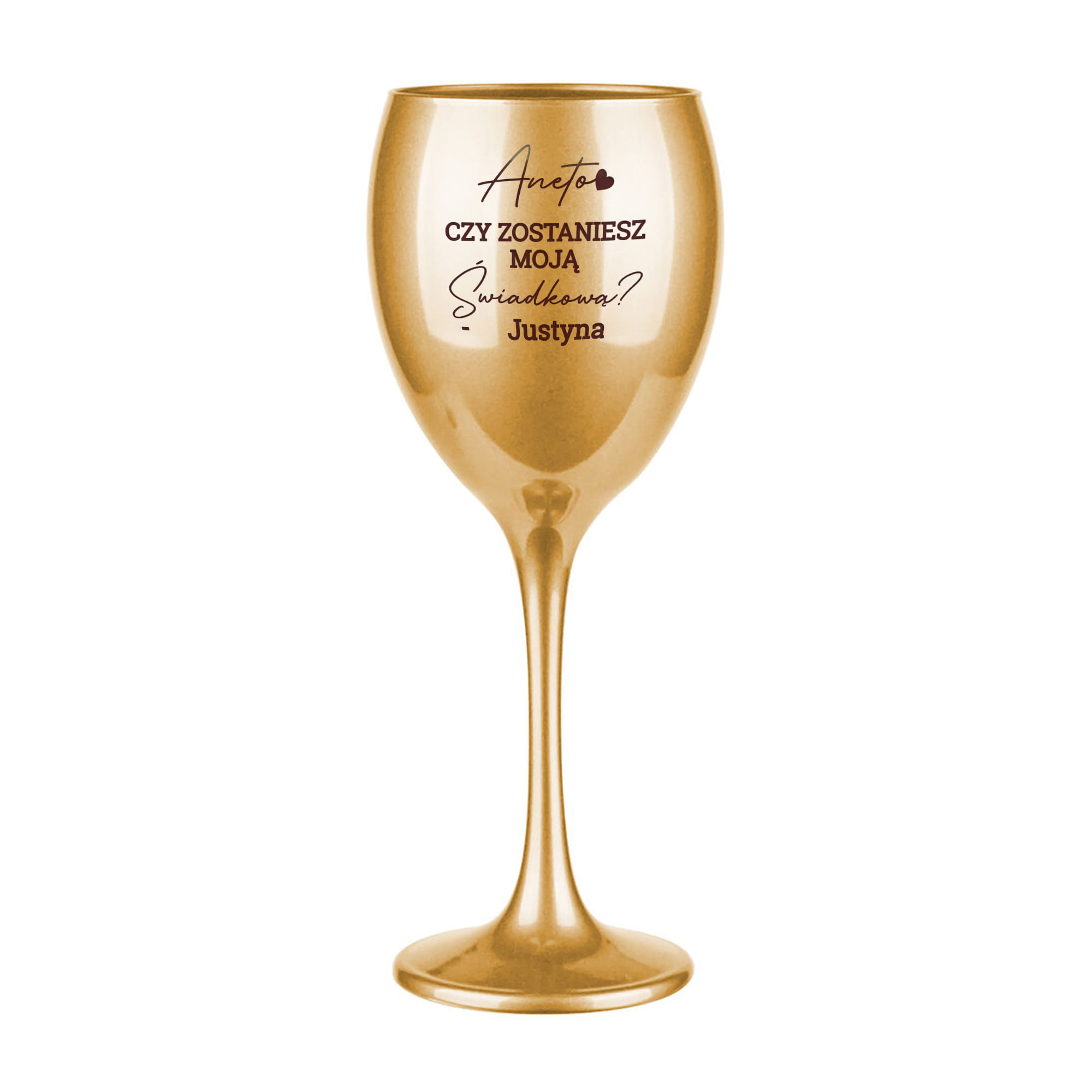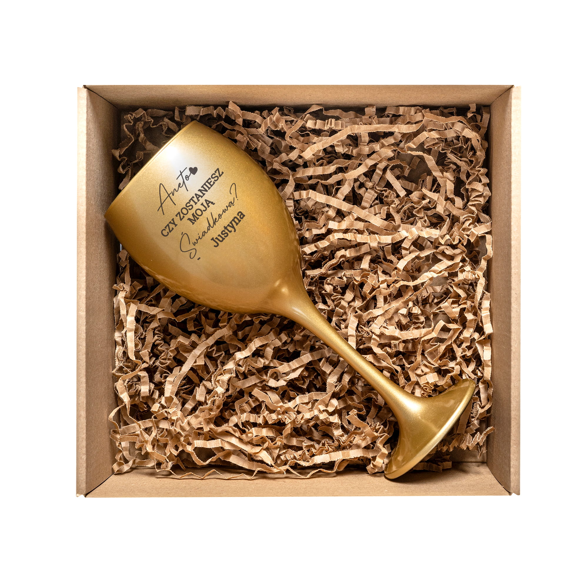 Złoty Kieliszek do Wina z Grawerem - Prośba o Świadkowanie - Zestaw Prezentowy Box dla Świadkowej - Czy Zostaniesz Moją Świadkową
